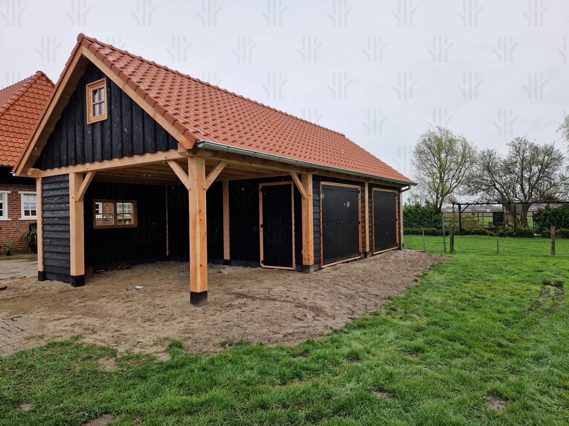 Robuust en veelzijdig, perfect voor een landelijke omgeving. Combineert opslagruimte met een overdekte buitenruimte om te ontspannen.